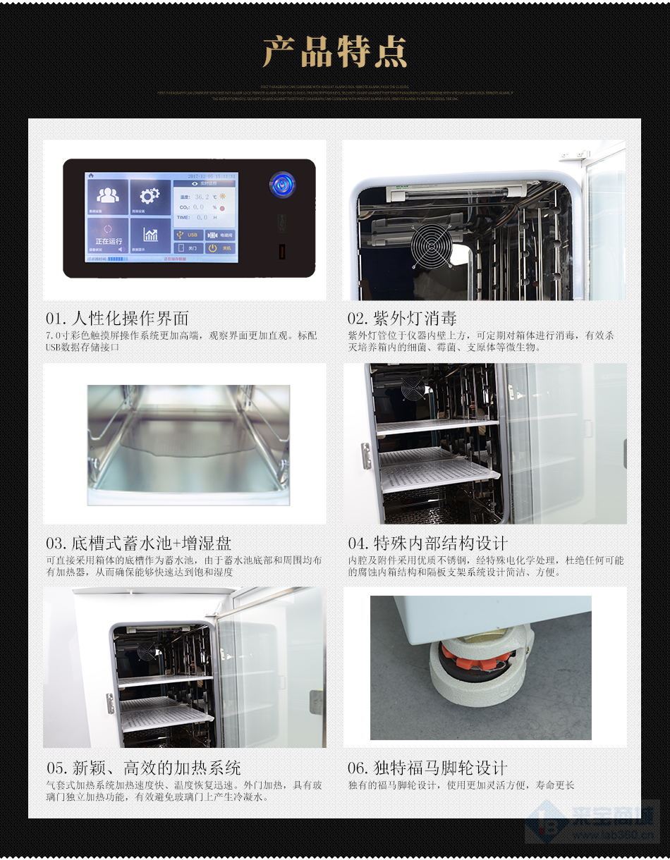 ● 水套式二氧化碳培养箱标配HEPA过滤器,针对直径大于等于0.30.3μm的颗粒,过滤效率达99.95%,可选配紫外灯。