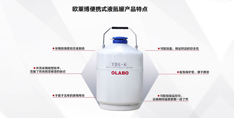 欧莱博YDS-6手提式液氮罐在生物、医学、畜牧等都有很大用途, 广泛用于畜牧业良种家畜精液冷冻贮存;医疗卫生行业的人体器官、皮肤、血液、细胞的低温保存,生物工程、工业冷装配、金属材料冷处理、低温粉碎及超导等广大领域。