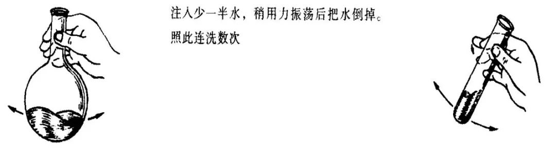 注入少一半水,稍用力振荡后把水倒掉,照此连洗数次。