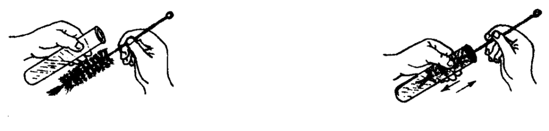 注意:①未倒废液不能注水;②不要多支试管同时刷。