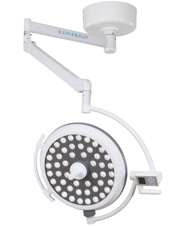手术无影灯一般由单个或多个灯头组成,系定在悬臂上,能做垂直或循环移动,悬臂通常连接在固定的结合器上,并能围着它旋转。无影灯采用可消毒的手柄或设消毒的箍(曲轨)作灵活定位,并具有自动刹车和停止功能以操纵其定位,在手术部位的上面和周围,保持相宜的空间。无影灯的固定装置可安置在天花板或墙壁上的固定点上,也可安置在天花板的轨道上。