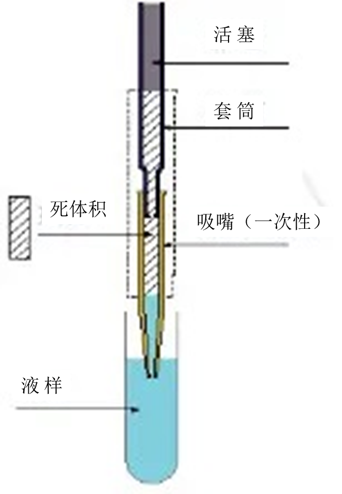 移液器的工作原理:活塞通过弹簧的伸缩运动来实现吸液和放液。