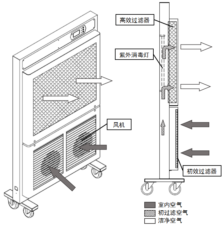 BIOBASE/博科紫外线空气消毒器是利用风动系统将室内污浊的空气吸入设备中,经过滤系统、杀菌系统对吸入的空气进行净化消毒处理后放回室内,通过不断的循环使室内空气质量逐步提升到一定洁净等级,以达到去除室内有害气溶胶、?;と嗽苯】档哪康?。