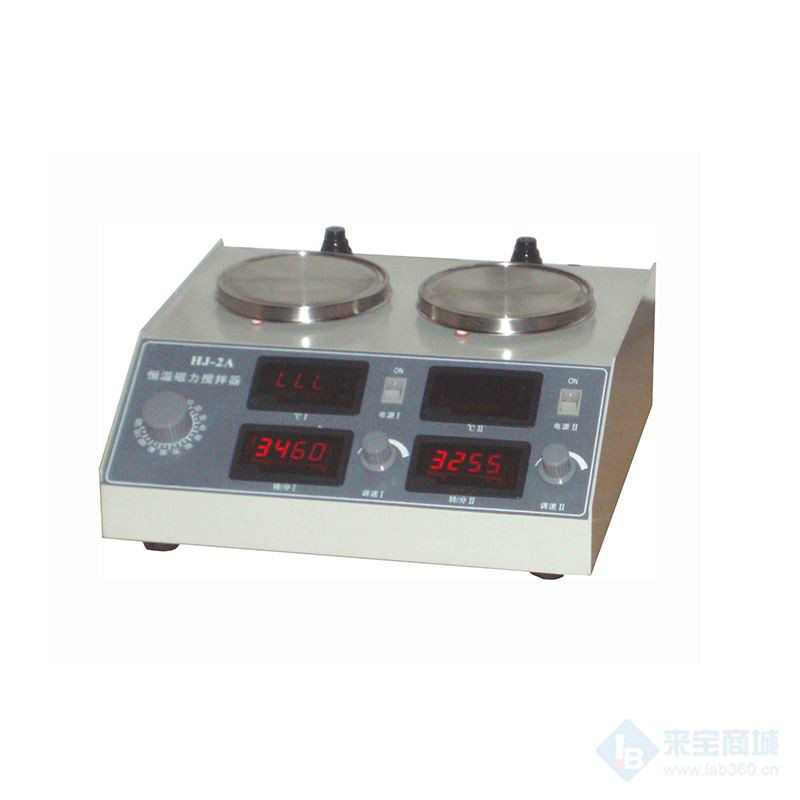 欧莱博 HJ-2A数显恒温磁力搅拌器HJ-2A数显恒温磁力搅拌器是双联式磁力搅拌器,仪器采用直流无刷电机,躁声低,机械故障少,调速平稳。由氟材料与优质磁钢精制而成的搅拌子,具有耐高温、耐磨、耐化学腐蚀,旋转力强的特点,并可在密封容器中进行调混工作,使用方便。