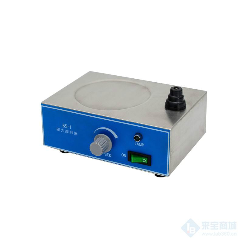 欧莱博 85-1 磁力搅拌器1.该仪器采用直流无刷电机,噪声低,机械故障少、调速平稳;2.由氟材料与优质磁钢精制而成的搅拌子,具有耐高温、耐磨、耐化学腐蚀,旋转力强的优点;3.仪器可在密封容器中进行调混工作,使用十分理想与方便。