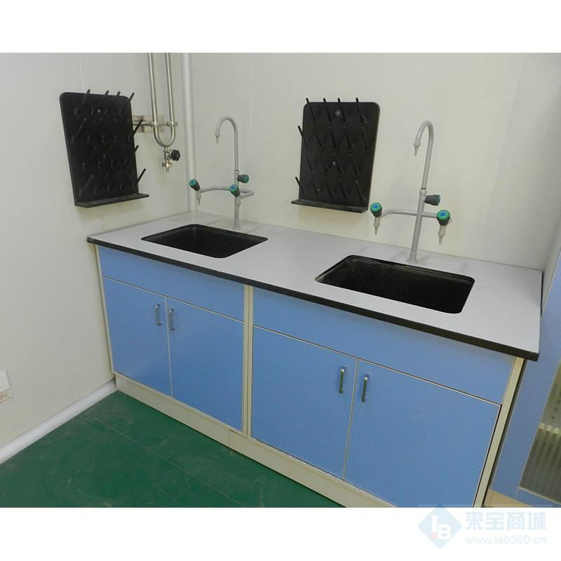 欧莱博 全木水槽台台面:采用12.7mm实验室专用理化板,四周边缘背边加工,总厚度为25. 4mm;(常用台面为理化板,理化板台面根据功能又分为贴面与实心,还有抗倍特板、环氧树脂板、陶瓷板,分别具有不同的侧重点