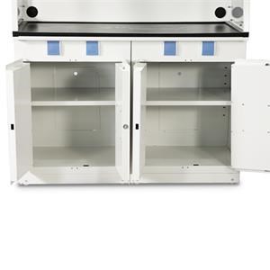 BIOBASE无管道净气型通风柜顶部配备原装进口风机和高效过滤系统,风机运作在柜内形成负压,将实验产生的有毒有害气体向上吸入,经过高效过滤系统吸附过滤,形成洁净的空气返回到室内,稳定的面风速形成了一个天然的屏障来隔离人员和所操作的化学品,通风柜持续工作可净化实验室内空气,进而确保操作人员的安全。