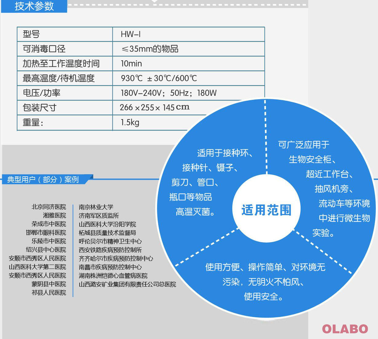 最高温度930℃±30℃,接种环2秒灭菌,有效减少使用者工作强度,而市场同产品温度只有800℃ 右,灭菌需7-8秒;