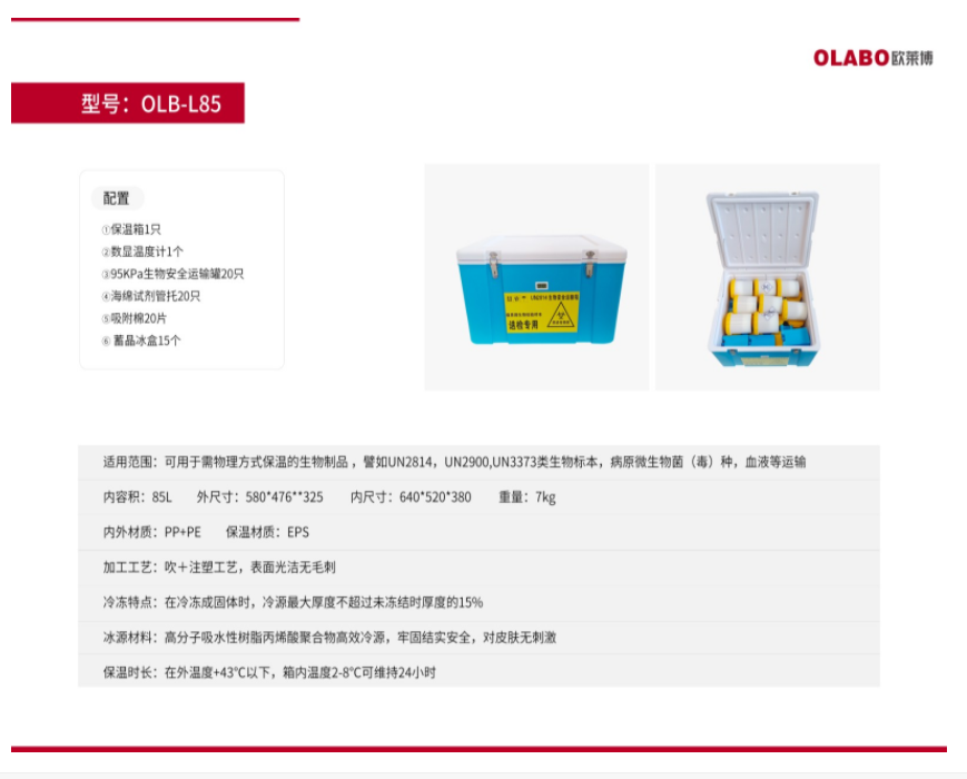 OLABO欧莱博生物安全运输箱OLB-L8585L,20个安全罐