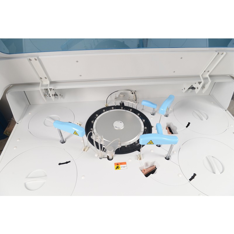 试剂盘:180个试剂位,双盘设计,可同时分析90个项目,支持多种规格试剂瓶;支持同项目多位置设置功能;