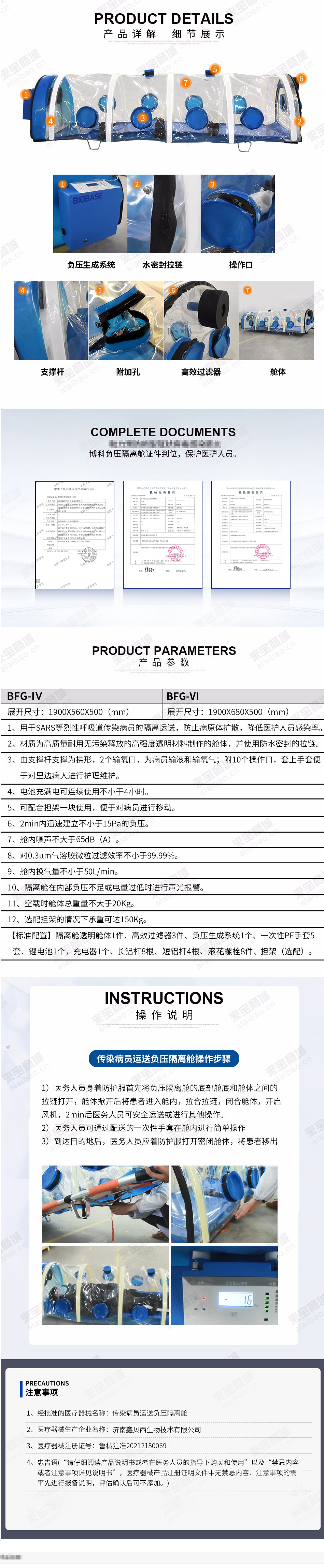 【标准配置】隔离舱透明舱体1件、高效过滤器3件(3个滤毒罐)、负压生成系统1个、一次性PE手套5套、锂电池1个,充电器1个、长的铝杆8根,短的铝杆4根,滚花螺栓8件。