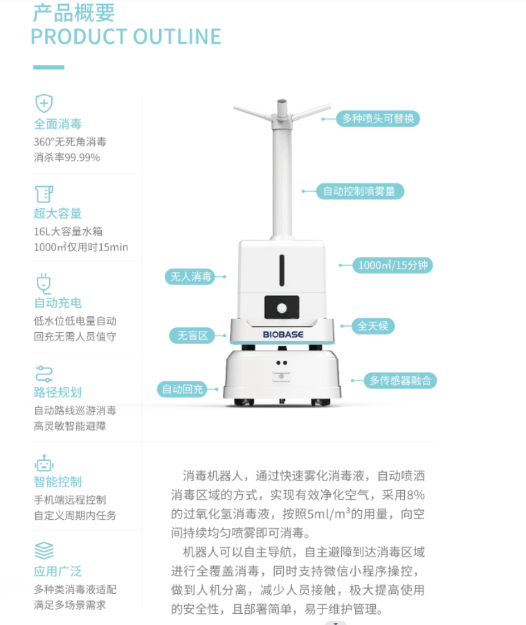 当前位置 > 首页 > 产品中心  > 消毒灭菌设备 > 消毒机器人> 博科/BIOBASE BKS-Y-800雾化消毒机器人